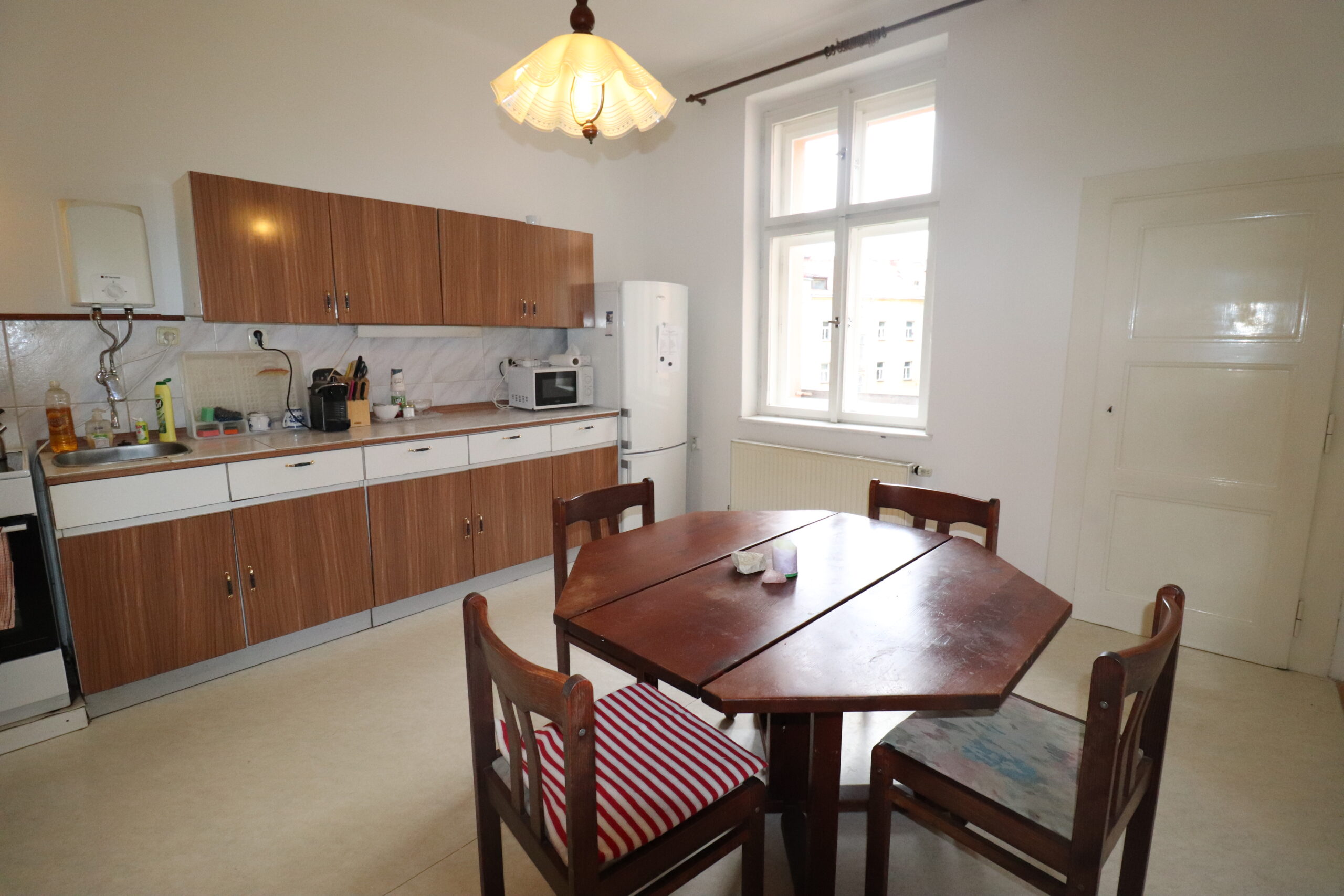 Tento velký byt měl původně dispozici 3+1, která byla upravena na 5+1. Dříve zde žila maminka majitelů, pro kterou byl však byt již příliš velký a nevyužitý. Majitelé uvítali možnost stabilního pronájmu za tržní cenu; mamince tak zajistili náhradní bydlení a získali finanční prostředky navíc. K rozhodnutí přispěla i dobrá zkušenost s tím, že jejich děti samy žijí ve spolubydlení.