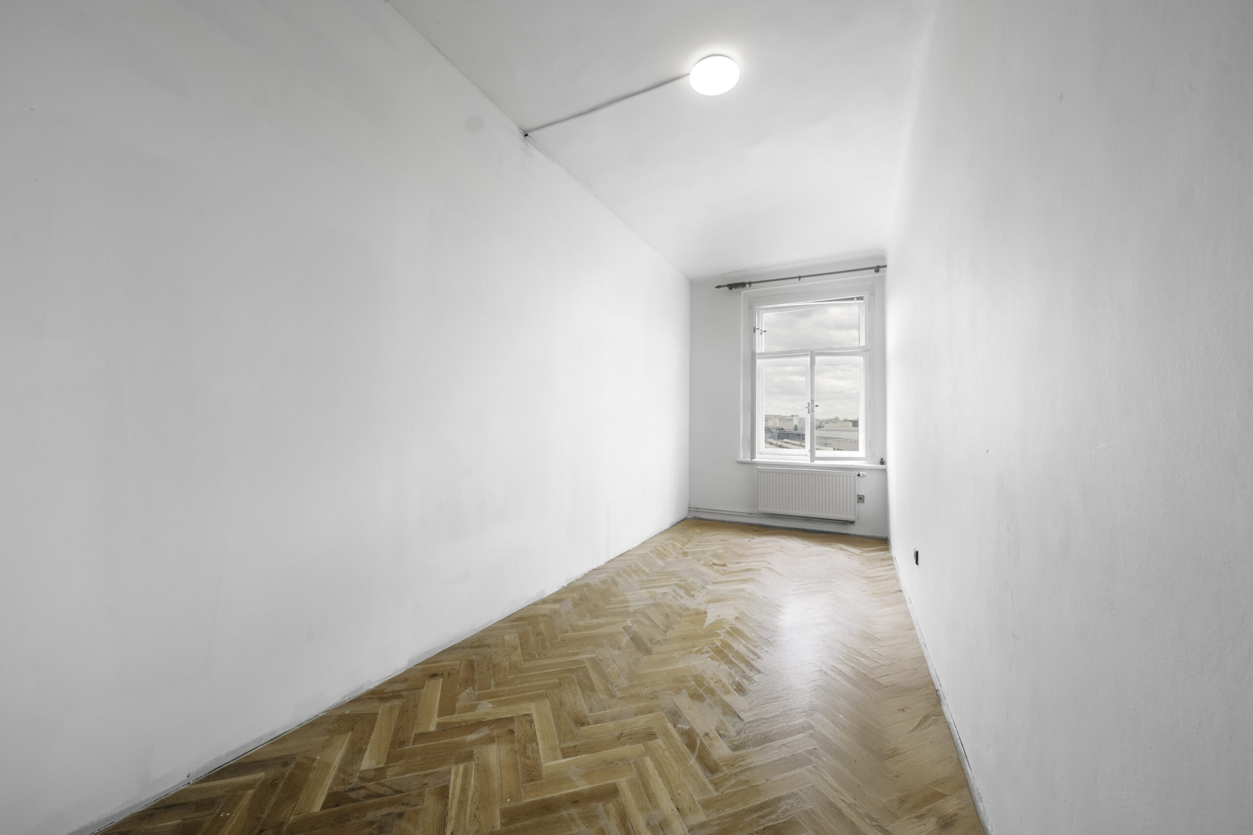 V bytě proběhly následující úpravy: vystěhování přebytečného nábytku, výměna kuchyňské linky, výmalba pokojů, rozdělení kuchyně a obývacího pokoje demontovatelnou příčkou, aby vznikly dvě další neprůchozí místnosti.